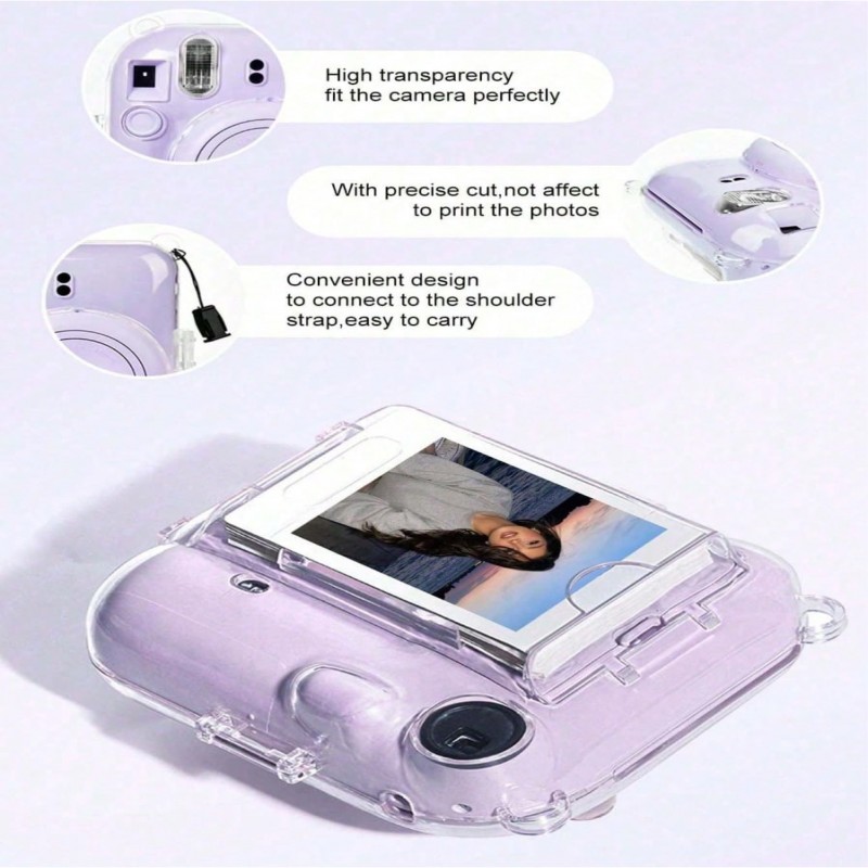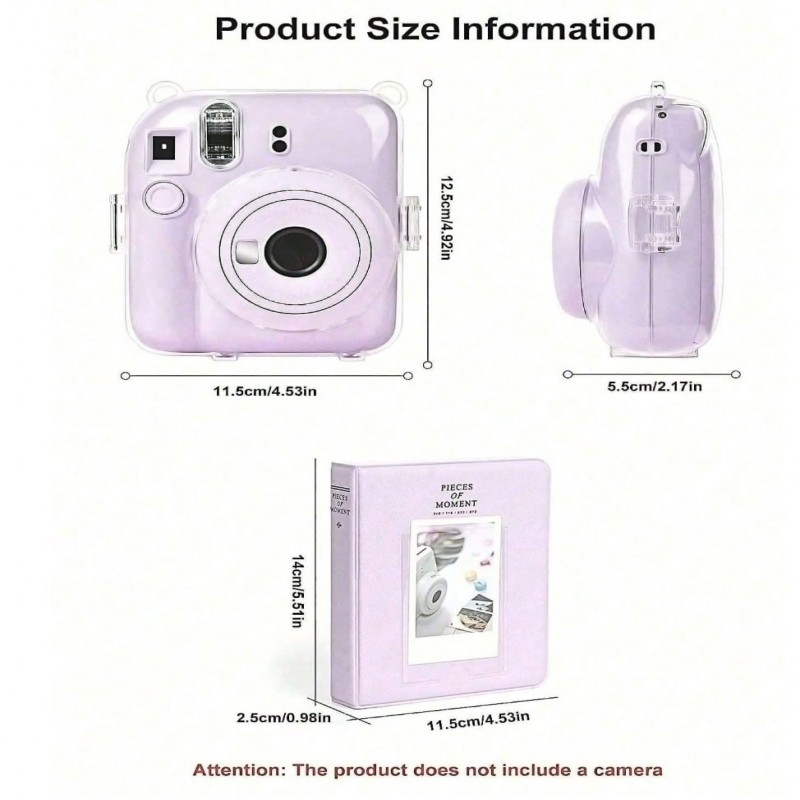 Mini cámara instantánea con 12 fotos, estuche protector, adhesivo y correa (3 en 1), álbum de fotos
