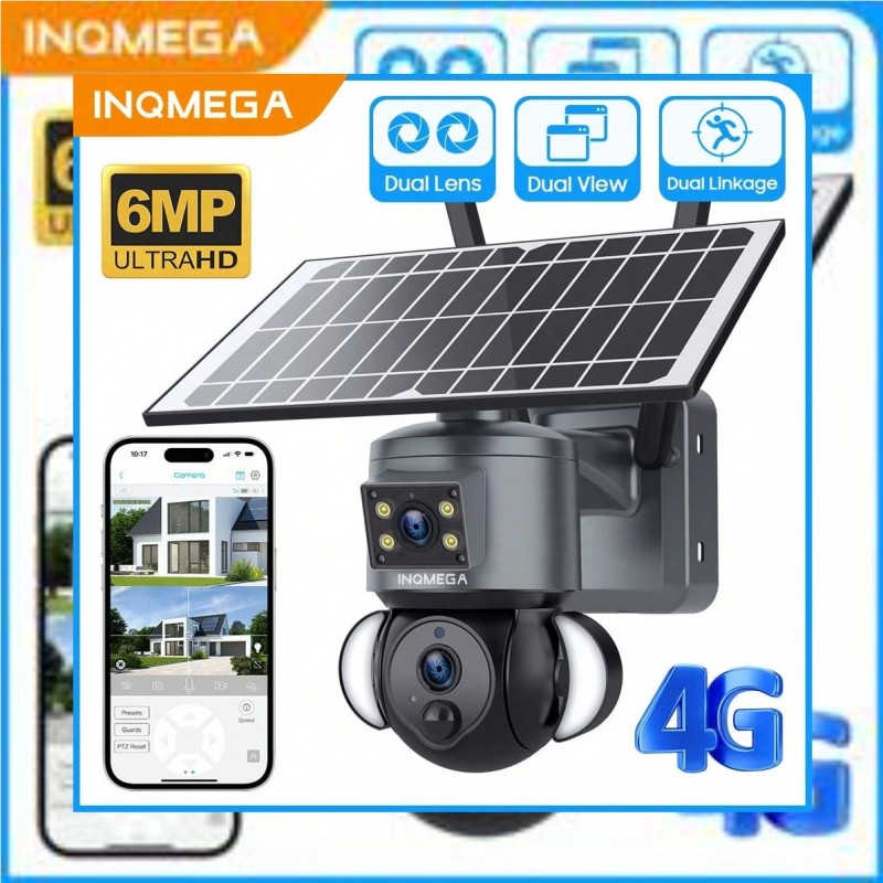 1 pieza INQMEGA Cámara de solar de 6MP 4G LTE con doble lente, detección de movimiento PIR y notific