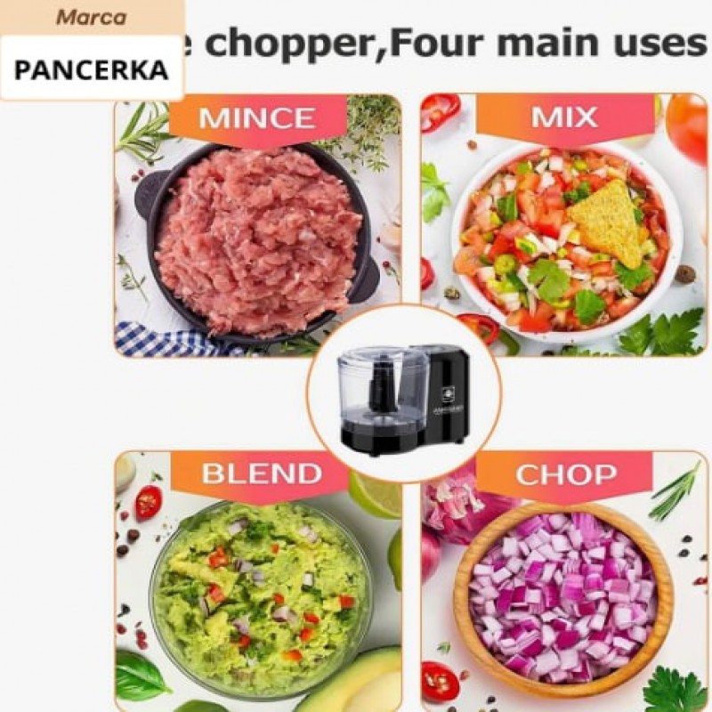 PANCERKA Picadora y mini procesadora de alimentos eléctrica, picadora de alimentos eléctrica de 1.5