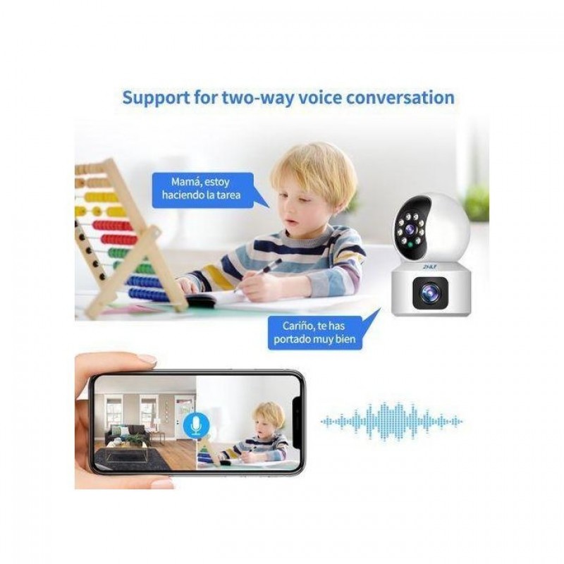 >>> Audio Surveillance Camera w/Pan/Tilt Bi-Directional Smart Home Surveillance Camera with Remote Control, you can view any position and any detail you need in 360 degrees without dead angle, tilt 355 degrees, tilt 90 degrees. Built-in IP camera microphone and speaker, you can set auto-tracking mode in the app; and manually turn the alarm function on or off.