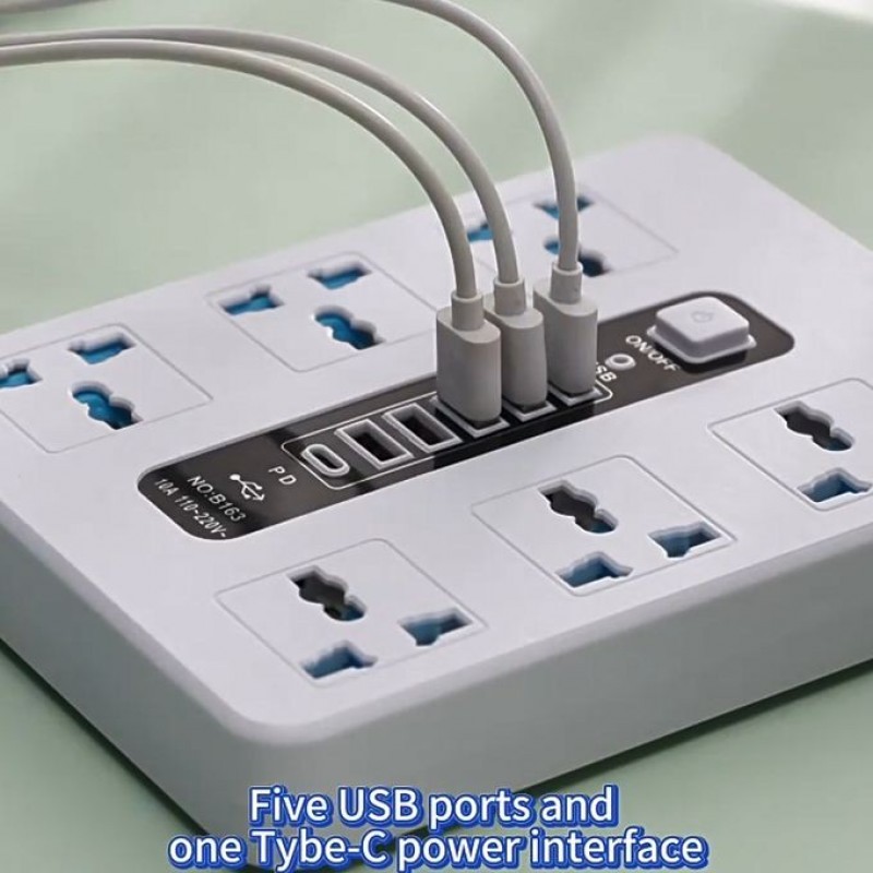 2500W power strip, surge protector with overload protection protects against spikes and fluctuations.
