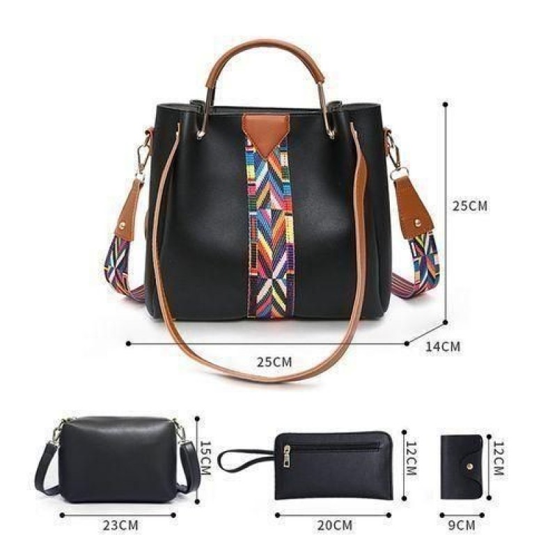 STY Women Handbags Shoulder Bags Tote Bags Ladies 4 In 1 Bags Set -Black