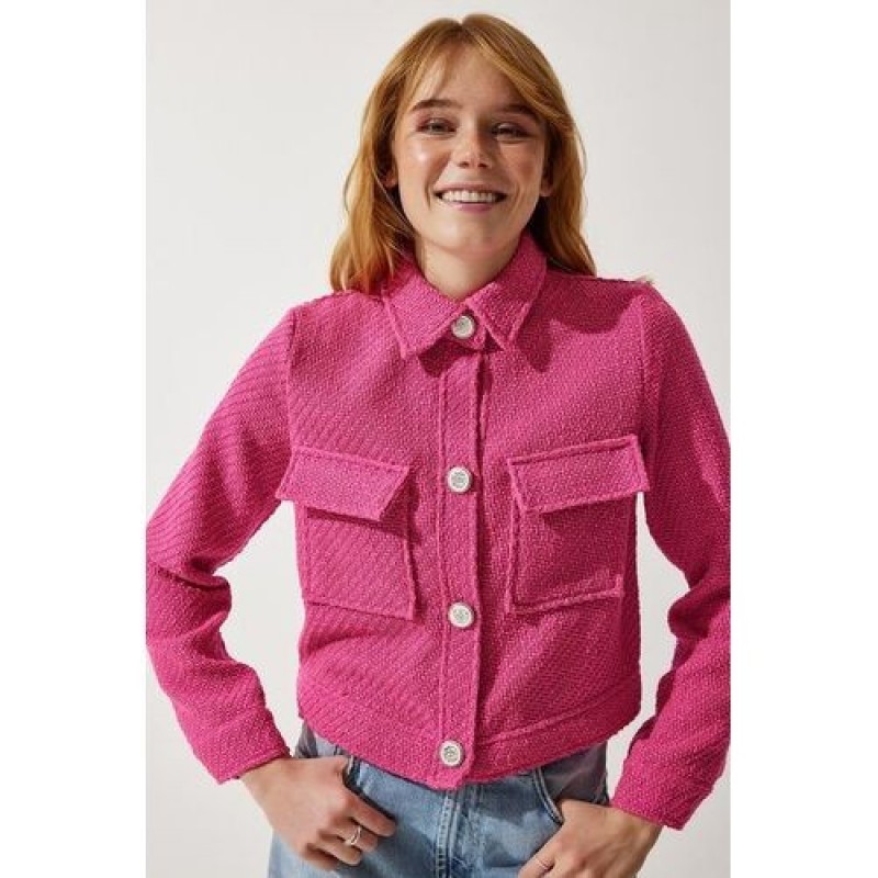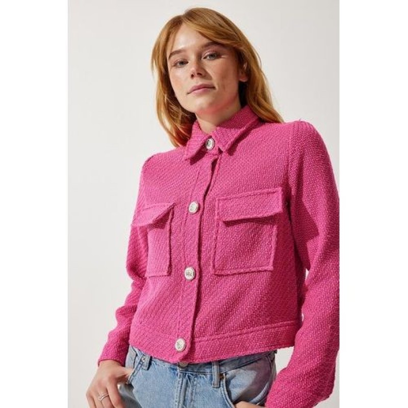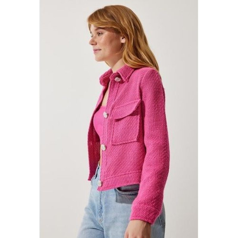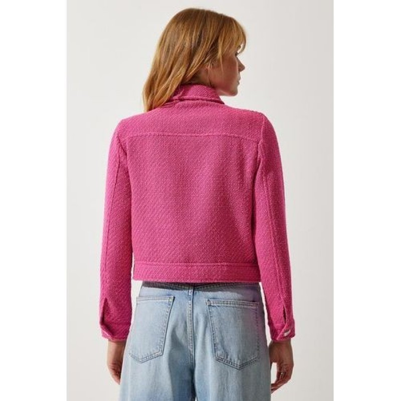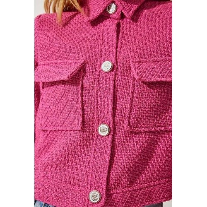 Trendyol Women's Pink Stylish Buttoned Woven Tweed Jacket