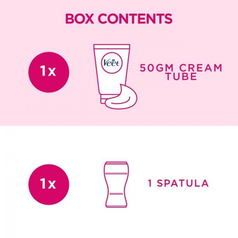 Veet hair removal cream for sensitive skin has been specially formulated to give you sumptuously smooth skin in just 5 minutes. Enriched with aloe vera and vitamin E, it helps avoid embarrassing rashes, lumps and bumps, leaving even sensitive skin touchably soft. Suitable for use on legs, arms, underarms and bikini line, it works even on very short hair for luxuriously smooth skin that lasts up to twice as long as shaving with your regular razor. It couldn’t be easier to use - simply cover the desired area with cream using the curved end of the Perfect Touch spatula, leave for 5-10 minutes then rinse off using the head of the spatula; this helps to pull the dissolved hair away, leaving skin perfectly smooth a