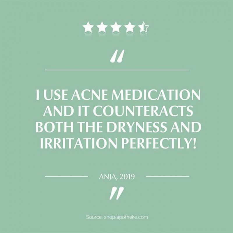 One of the side effects of acne medication is that it frequently causes severe dryness in skin. This intensely moisturising, non-greasy cream soothes these symptoms. Ceramides support skin’s protective barrier and reduce moisture loss, SymSitive* helps to calm irritation such as stinging and burning directly at source and Licochalcone A helps to reduce redness. The formula helps to bring demanding, blemish and acne-prone skin under control and it feels smooth and supple after the first application.