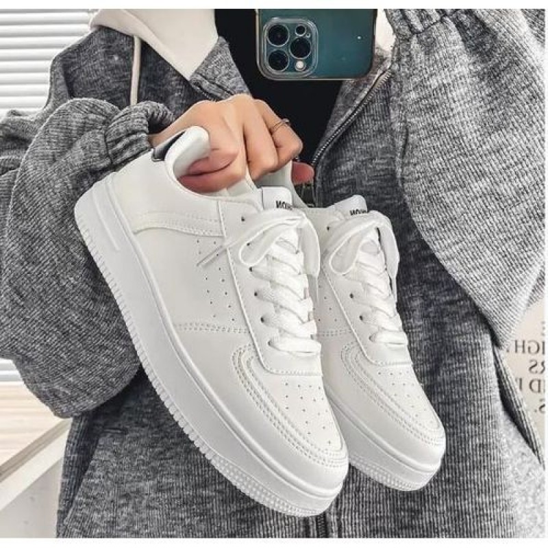 Step into effortless style and comfort with these classic all-white casual sneakers. Crafted with a sleek and minimalist design, these shoes feature high-quality PU leather uppers that are durable and easy to clean. The perforated toe area enhances breathability, keeping your feet fresh throughout the day.