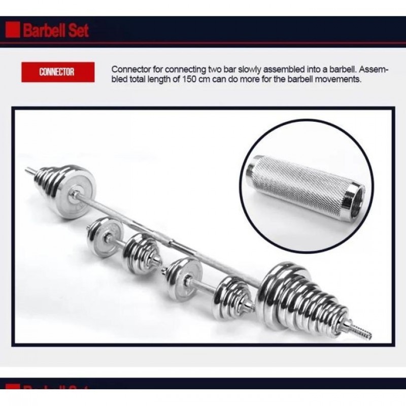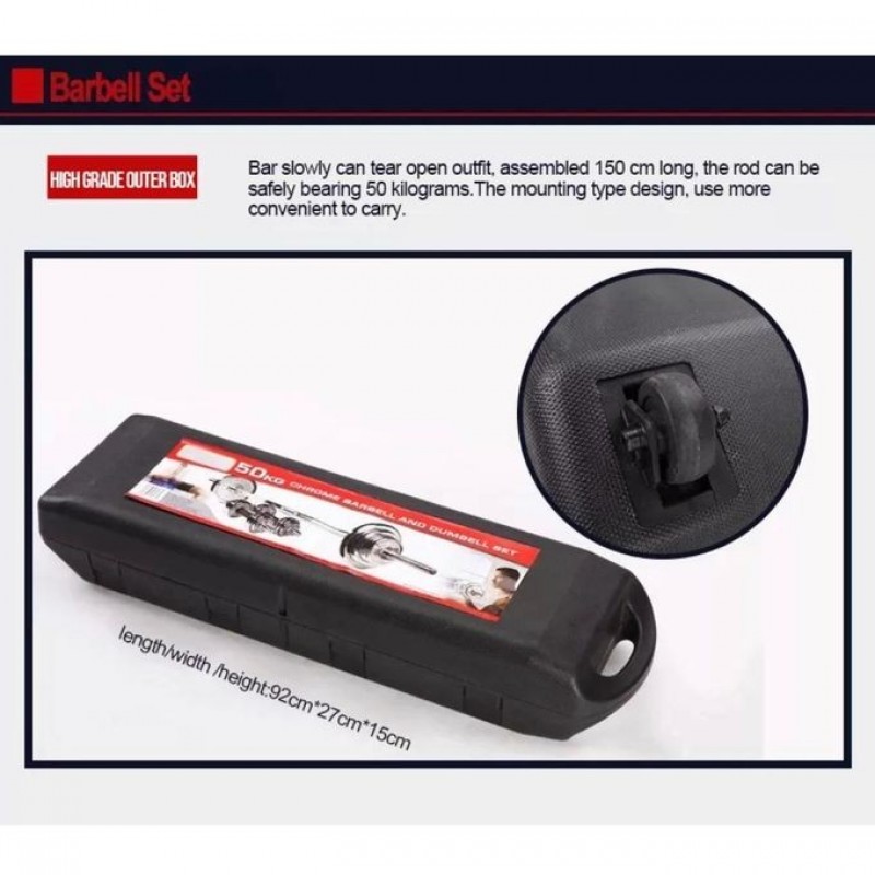 50kg Barbell weight and rod. It's suitable for body-building and strength training. It's made up of 45kg chrome weight plates and 5kg barbell rod.