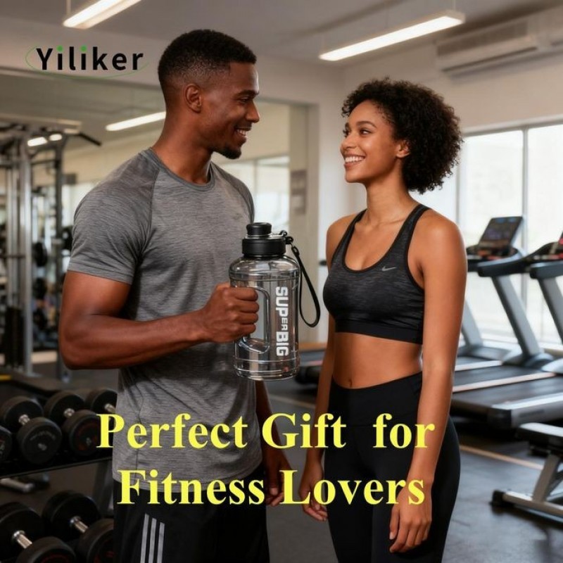 Yiliker Water Bottle for Gym – 1.6L Leak-Proof Sports Bottle with Handle & Straw, BPA Free, Larg