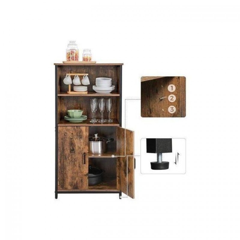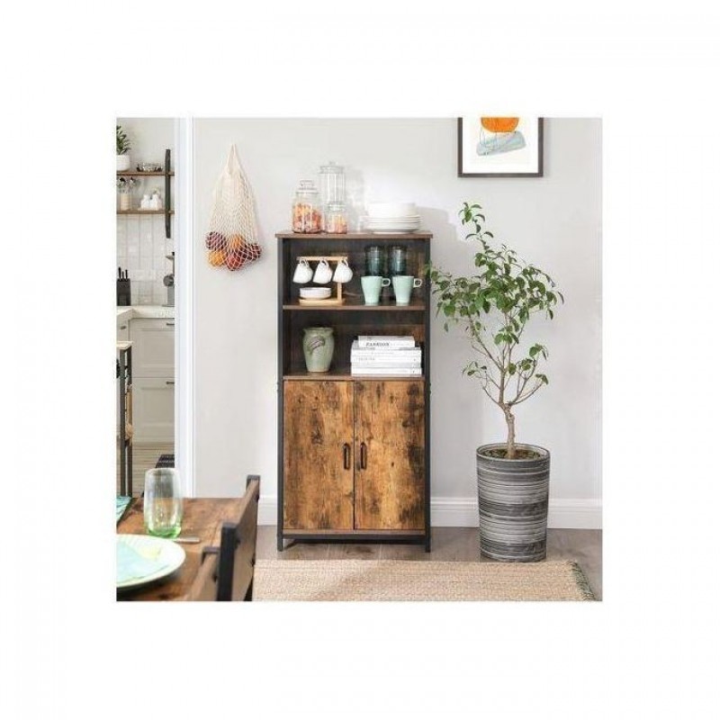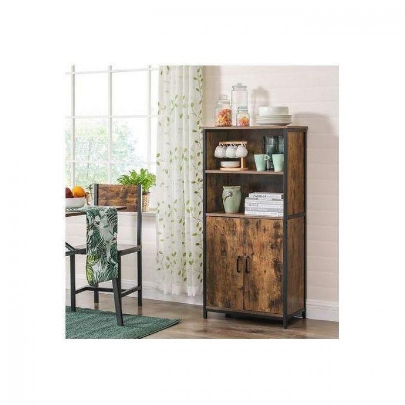 Transform your space with this beautifully designed bookcase, offering ample storage for your home or office. With dimensions of 60 x 35 x 125 cm, this versatile piece is perfect for stowing away clutter, whether it's books, decorations, kitchen utensils, or office supplies. The two open compartments and two shelves behind the doors provide plenty of room for organizing your essentials.