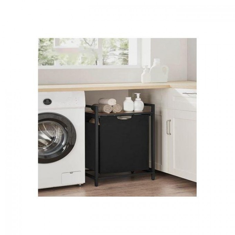 Equipped with a Slatted Storage Shelf, this laundry hamper offers additional space to organize detergents or toiletries. The shelf's innovative slatted design promotes excellent ventilation, preventing unpleasant odors from accumulating around your laundry.