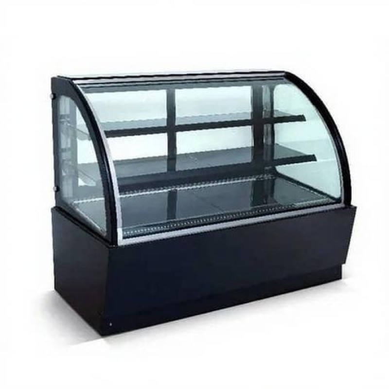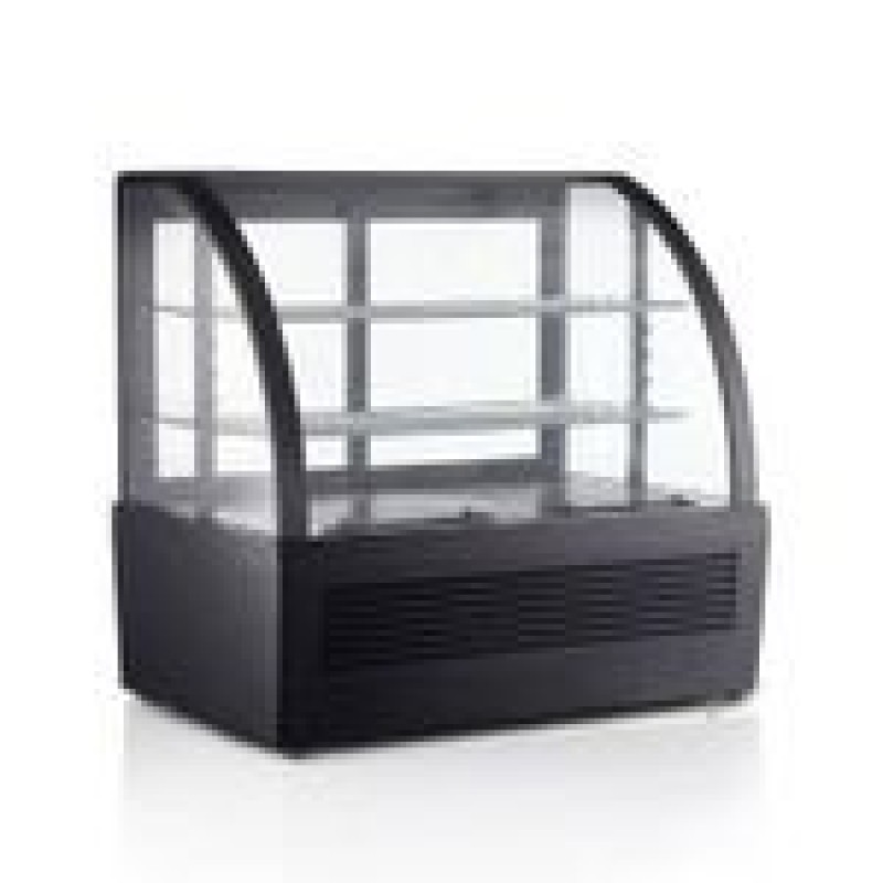 Product Details Tabletop refrigeration display case for bakeries, cafes, and convenience stores Air cooling system with powerful fans, high quality compressor, and copper condenser for fast and uniform cooling Digital temperature control system with a range of 39.2℉-50℉(4℃-10℃) Eye-catching internal LED lighting to highlight products Tempered glass with demisting function and electric heater strip for clear visibility Rear sliding door, front curved glass, and black exterior for an attractive bakery display case