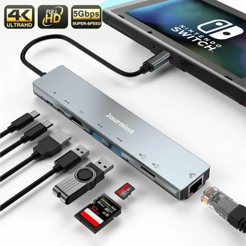 Jourmind 8 In 1 USB C Adapter,Type C HUB Ethernet HDMI Adapter ₦13,984 |