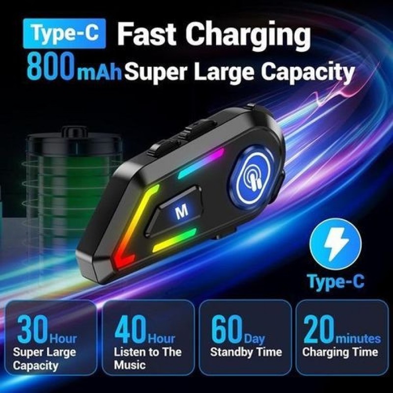 Built for durability, the C5S features an IP67 waterproof rating, ensuring dependable performance in rain, dust, and tough riding conditions. Its 800mAh long-lasting battery offers up to 30 hours of continuous music playback and 40 hours of talk time, making it perfect for long-distance riders and daily commuters.